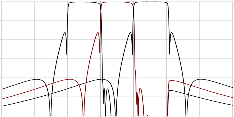 Adjacent TV channels (e.g. 21-22-23) or DAB blocks (e.g. 12A-12B-12C) can be combined in the same combiner. Requires a Mask-Combiner configuration (Filters in the transmitters are either absent or removed).